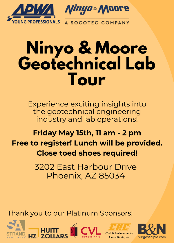 Join the APWA Arizona Chapter –Young Professionals Committee for a tour of Ninyo & Moore’s geotechnical lab!